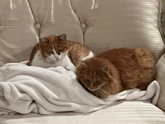 В момента се грижа за две Слънчеви-рижави същества Магдалена и Магистър, които са Египетска и Ангорска порода и са Любовна двойка. Когато се хранят си сплитат опашките и много се гушат един в друг. Преди един месец осинових и едно чисто черно изоставено в църквата Света Неделя клетниче с бяло петънце, което кръстих Звездичко. Той е мъничък Алфа котарак-роден за принц и успя да надвие един котарак гигант – опасна черна пантера, който отсъпи назад и му призна силата.